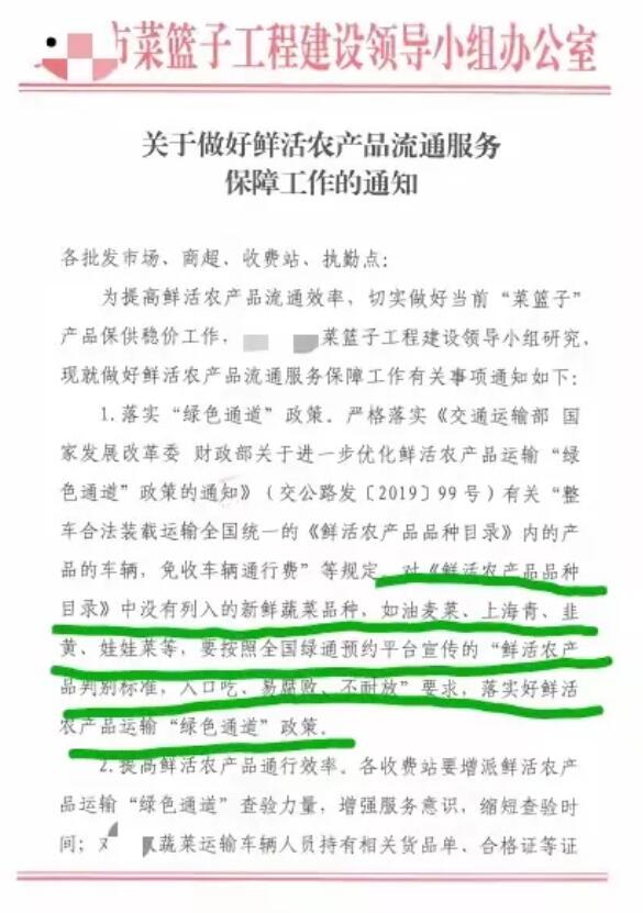 據(jù)全國部分主流官方媒體報道:11月初,中部某地方“菜籃子”工程建設(shè)領(lǐng)導(dǎo)小組辦公室發(fā)出通知,外地車輛運輸蔬菜進(jìn)入該城市,非《鮮活農(nóng)產(chǎn)品品種目錄》內(nèi)的蔬菜品種,應(yīng)按照國家關(guān)于鮮活農(nóng)產(chǎn)品判別標(biāo)準(zhǔn),享受鮮活農(nóng)產(chǎn)品運輸“綠色通道”政策,免收車輛通行費。