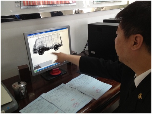 很快嫌疑車輛的掃描圖便呈現(xiàn)在了綠通快檢系統(tǒng)的客戶端上。查驗關員發(fā)現(xiàn),該車其他部位圖像顯示都正常,只有輪胎部位顯示的是重重的黑影,而正常輪胎成像應是白色。關員由此判斷,貓膩就出在輪胎里。